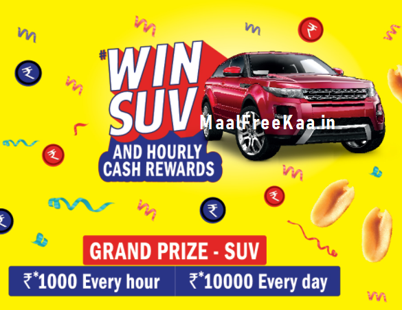 Buy Snickers and Win SUV Absolutely FREE Also Win Every Hours Gift Voucher Worth Rs 1000 & Everyday Win Gift Vouchers Worth Rs 10,000/- Any participant can win a max of 1 prize during the contest period from a mobile number From the Valid Entries received, the Organizer will select 781 winners who will win Prizes throughout the Promotion Period Each entry eligible for evaluation will be evaluated on the creativity of the response received by an independent auditor appointed by the Organizers. there will be total of 781 such prizes which will be declared during the contest period.